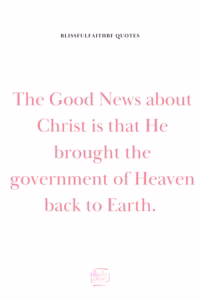 The Good News about Christ is that He brought the government of Heaven back to Earth.