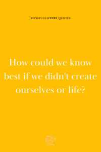 How could we know best if we didn’t create ourselves or life?