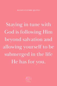 Staying in tune with God is following Him beyond salvation and allowing yourself to be submerged in the life He has for you.