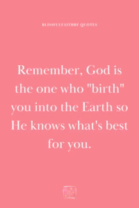 Remember, God is the one who “birth” you into the Earth so He knows what’s best for you.