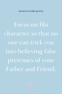 Focus on His character so that no one can trick you into believing false pretenses of your Father and Friend.