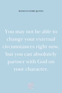 You may not be able to change your external circumstances right now, but you can absolutely partner with God on your character.