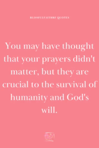 You may have thought that your prayers didn’t matter, but they are crucial to the survival of humanity and God’s will (See Genesis 18:16-33).