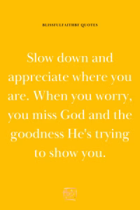 Slow down and appreciate where you are. When you worry, you miss God and the goodness He’s trying to show you.